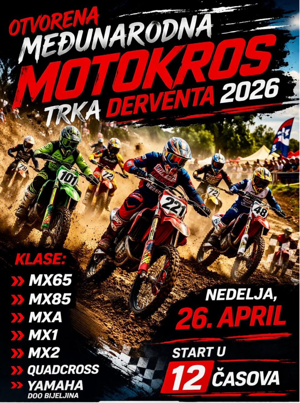 На стази ће вјештине на двоточкашима демонстрирати возачи из БиХ, Хрватске и Словеније распоређени у више категорија, од малих класа мотора за дјецу до 450 кубика у професионалној категорији, као и квадовима.